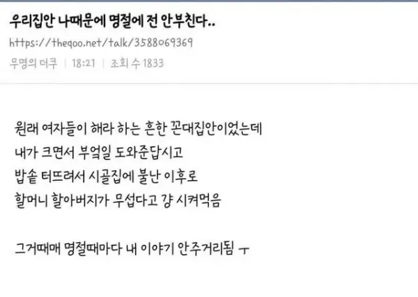 [유머] 우리 집안 나 때문에 명절에 전 안부친다..