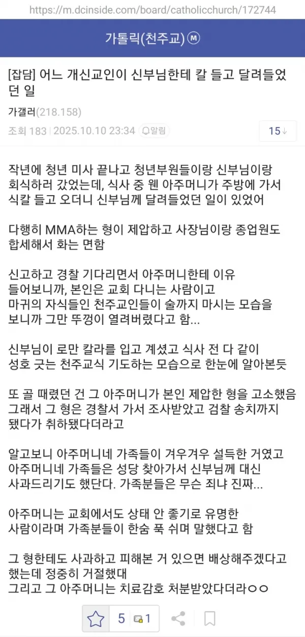 [기타] 신부님한테 칼 들고 달려든 개신교인
