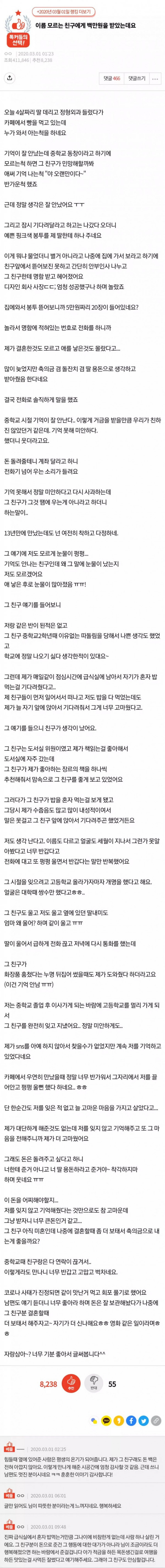 [기타] 예전자료) 모르는 친구에게 백만원을 받았는데요