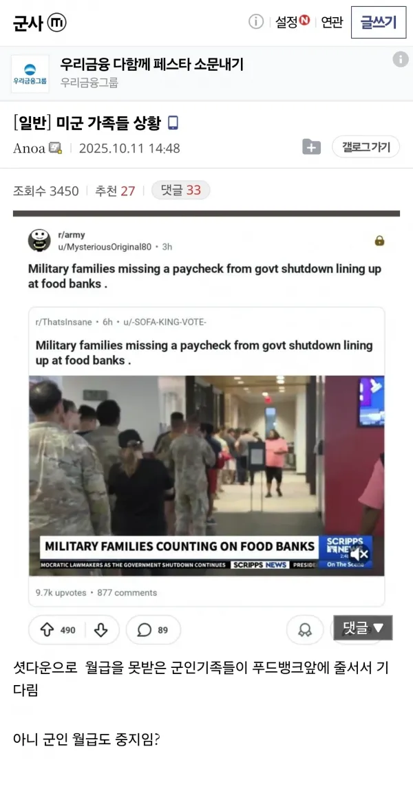 [기타] 정부 셧다운으로 군인 월급도 못주는 미국