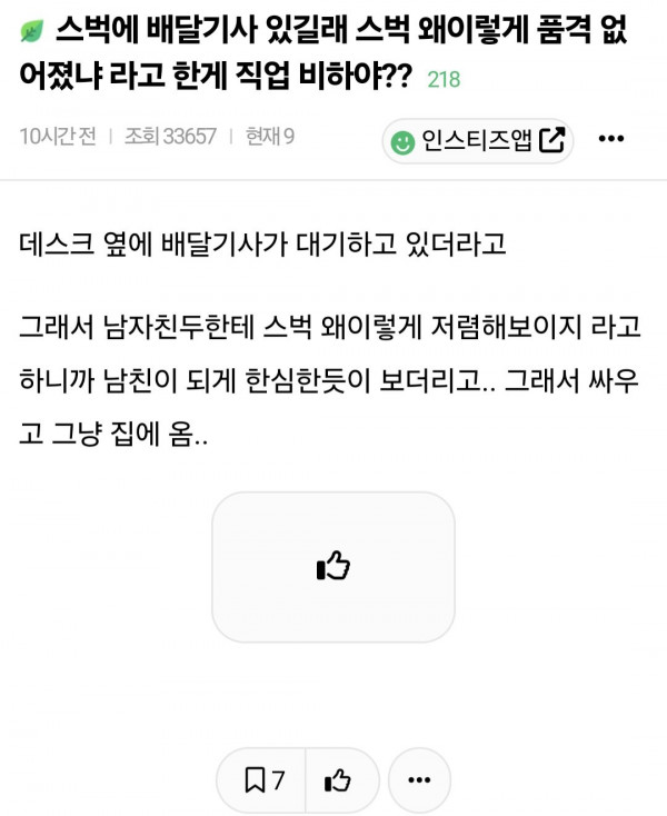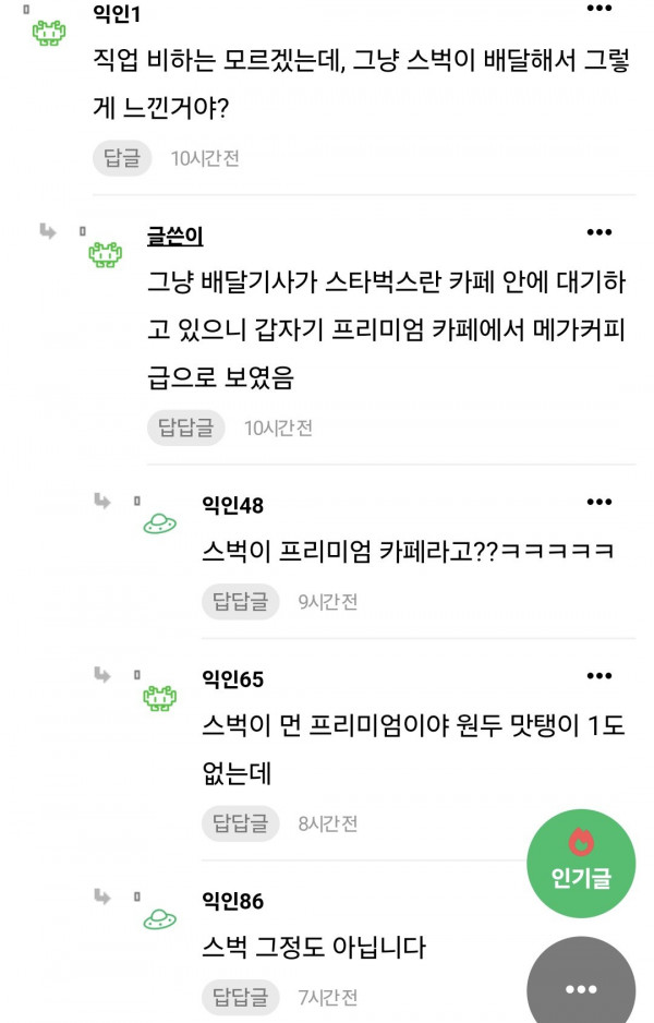 [기타] 스타벅스에 배달기사 있어서 품격떨어진다는 여자친구