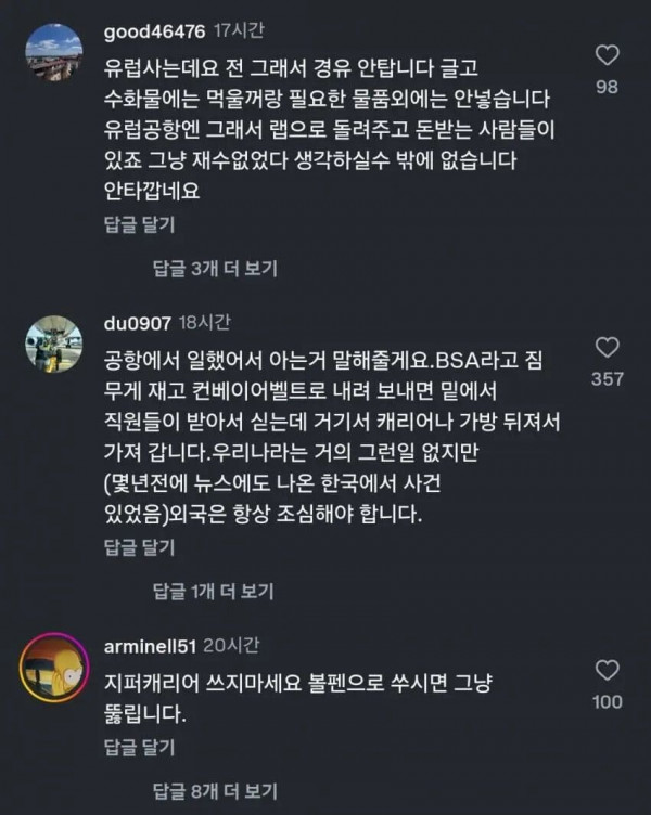 [기타] 싱글벙글 유럽 공항에서 종종 벌어지는 수하물 절도
