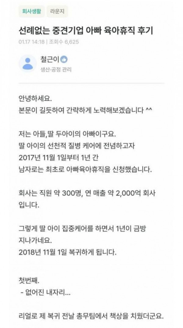 [기타] 중견기업아빠 육아휴직 후기