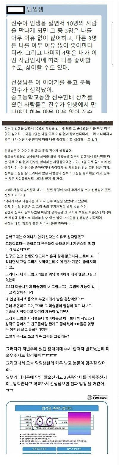 [유머] 왕따 당하던 학생에게 담임이 보낸 카톡