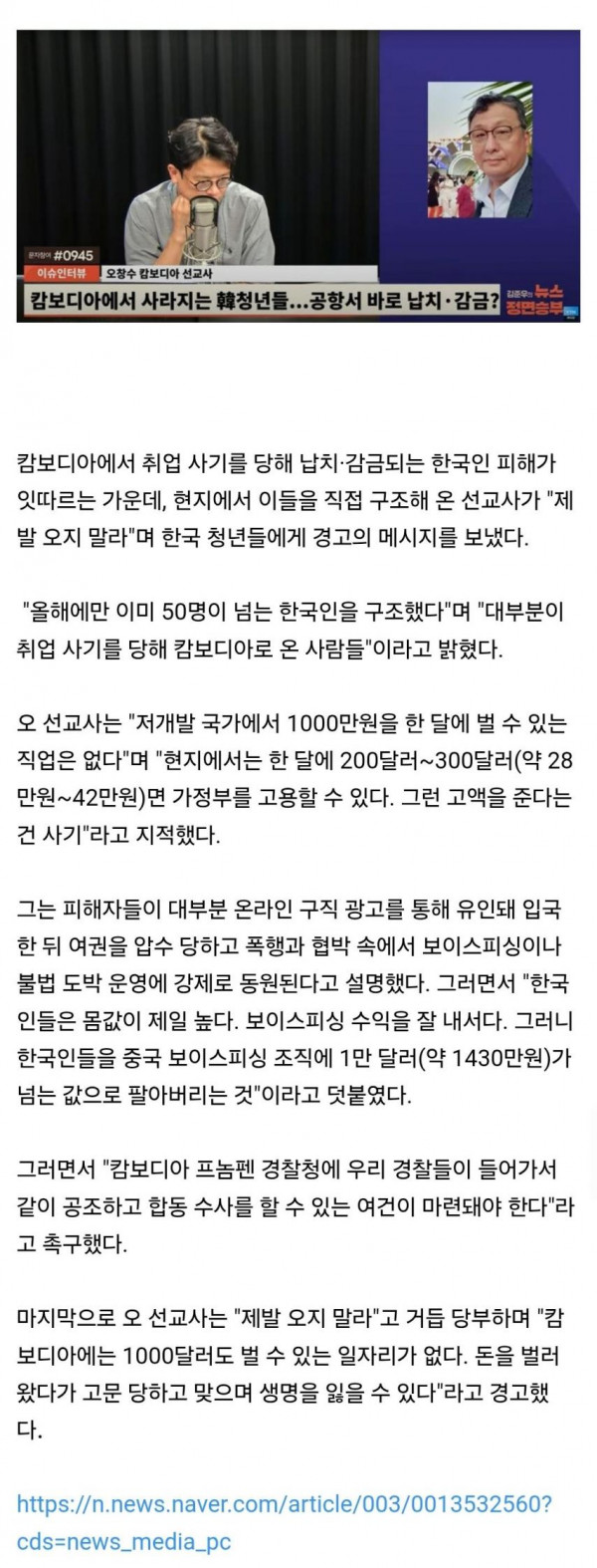 [사회] 캄보디아 선교사 "한국인들 제발 캄보디아로 오지 마라"