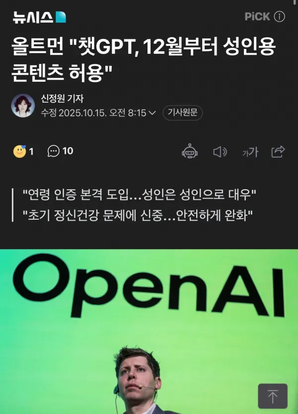 [기타] 챗GPT 12월부터 야스 컨텐츠 전면적으로 허용한다.