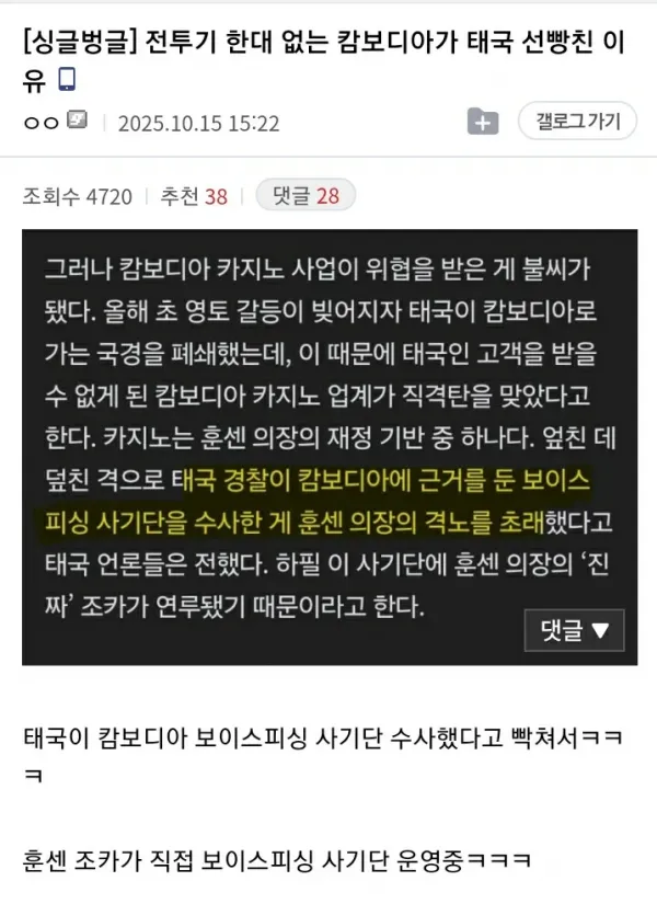 [기타] 캄보디아가 태국 선빵친 이유