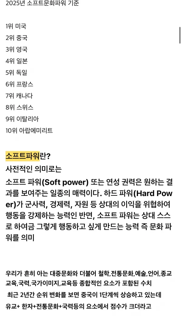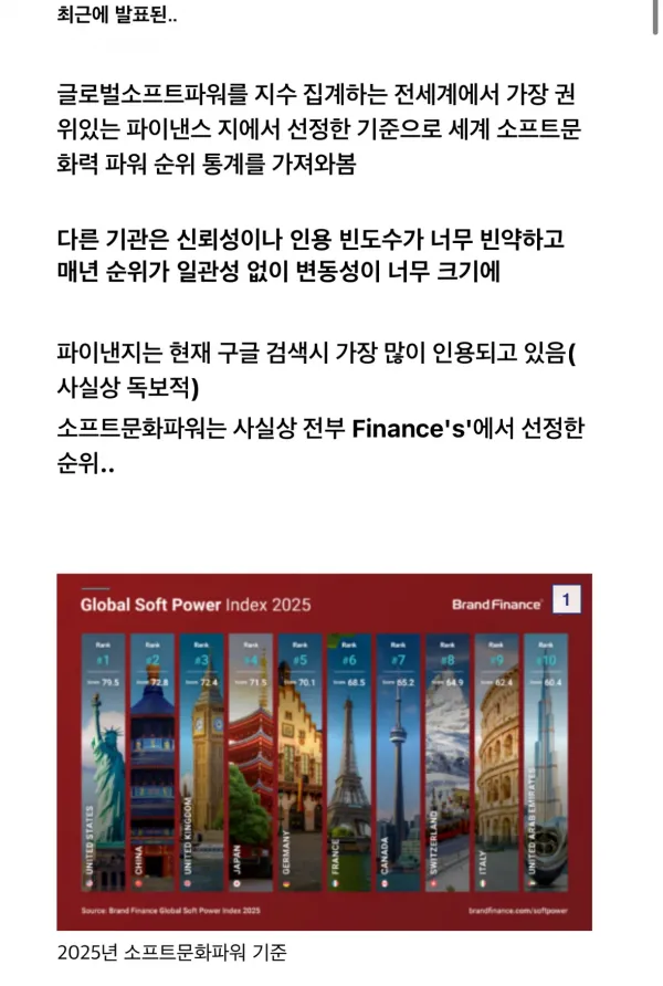 [기타] 최근 발표된 전세계 소프트파워 문화력 순위