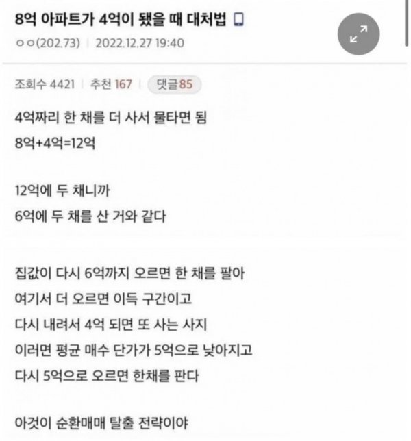 [유머] 8억 아파트가 4억이 됐을 때 대처법.jpg