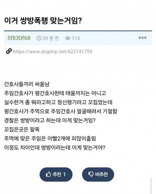 [기타] 태움당한 남간호사가 여간호사 죽빵날림