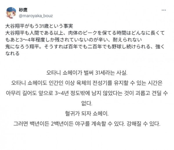 [유머] 오타니 쇼헤이의 육체적 전성기도 앞으로 몇년 남지 않았다
