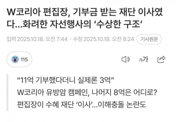 [유머] W코리아 편집장, 기부금 받는 재단 이사였다…화려한 자선행사의 ‘수상한 구조’