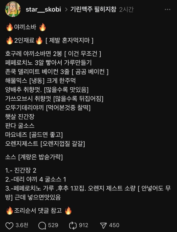 [유머] 바람피고 잠수이별한 전여친도 연락하게 만드는 야끼소바 레시피