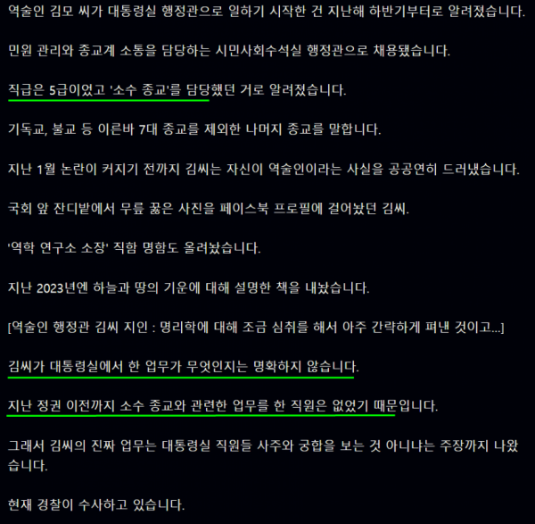 [사회] 역술인 행정관, 윤 정권 마지막날까지 월급 받아갔다