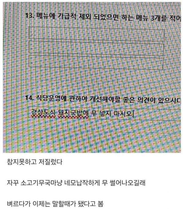[유머] 회사 급식 설문조사.