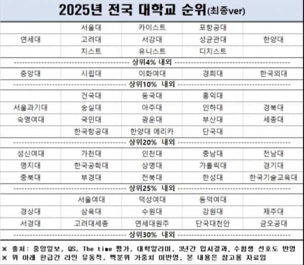 [순위] 2025년 전국 대학교 순위(최종ver)