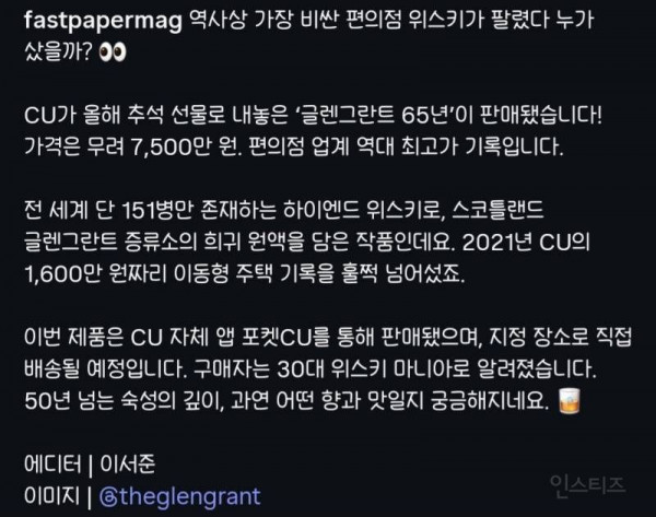 [기타] 대한민국 편의점업계 역사상 최고가 물품 판매완료