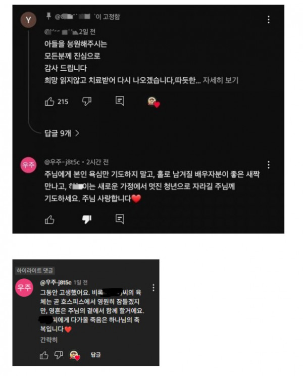 [기타] 췌장암 4기 환자 유튜브에 달린 댓글.jpg
