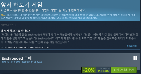 지금 스팀에서 20% 할인도 하고 있으니