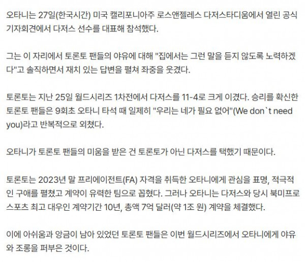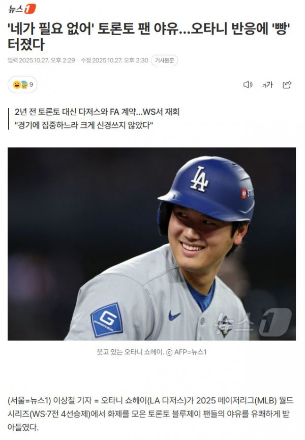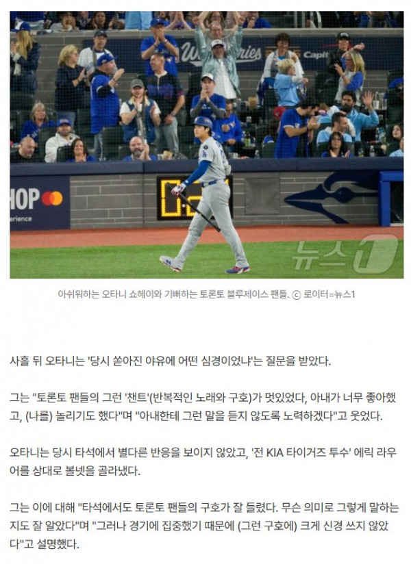 '네가 필요 없어' 토론토 팬 야유…오타니 반응에 '빵' 터졌다