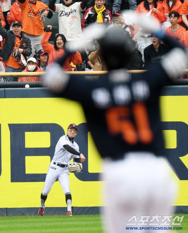 LG는 9번 이도윤 타석 때 내야진이 전진수비를 펼쳤다. 내야 땅볼이 나오면 점수를 주지 않겠다는 강한 의지. 그리고 이도윤의 타구가 2루수 옆쪽으로갈 때 2루수 신민재가 빠르게 슬라이딩 캐치를 했고, 3루주자 최인호가 홈으로 대시를 하지 못해 1루로 던져 이도윤을 잡아냈다. 그리고 손아섭은 톨허스트가 151㎞의 빠른 직구로 삼진처리.