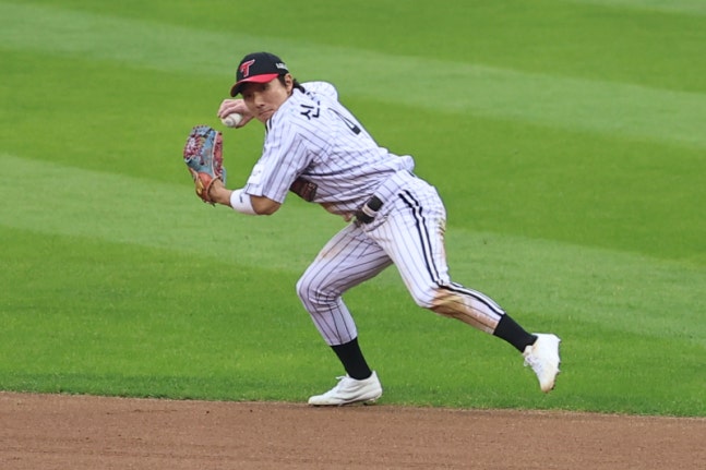 신민재는 이날 경기 전에 문동주에 대해 "워낙 직구가 빠른 선수다 보니 오늘 변화구보다 직구에 초점을 두고 타석에 들어가려고 한다"고 말했다. 이날 3안타(문동주 2개·박상원 1개) 모두 직구를 받아친 것이었다.