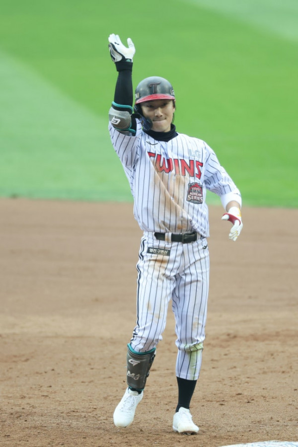 신민재는 이날 5타수 3안타 2타점 3득점을 기록했다. 양 팀을 통틀어 3안타를 친 선수는 그가 유일했다. 경기 전에 "문보경과 (오)지환이 형의 타격감이 정말 좋다"고 말했는데, 정작 경기에서는 자신이 가장 뜨거운 타격감을 선보였다.