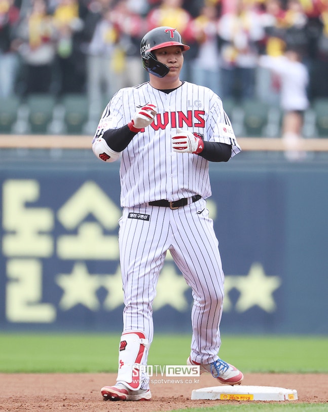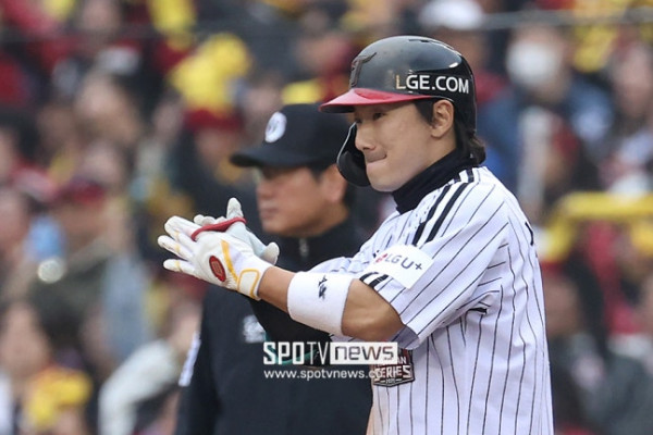 LG 트윈스는 26일 서울 잠실야구장에서 열린 '2025 신한 SOL뱅크 KBO 한국시리즈' 한화 이글스와 1차전에서 8-2로 이겼다. 안타 숫자는 한화와 같은 7개였지만 4사구에서 한화가 1개, LG가 7개로 차이가 컸다. LG는 두 배 가까이 많은 주자를 내보낸데다 6회 안타 3개와 4사구 3개를 집중적으로 얻어내면서 4점을 뽑아 승기를 잡았다.