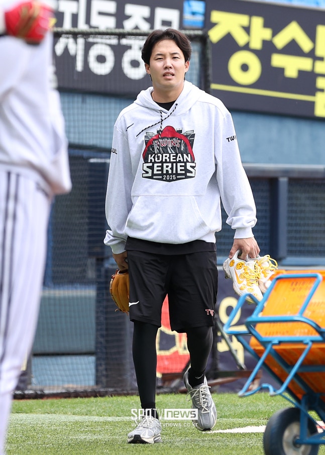 잠시 후 염경엽 감독은 치리노스가 옆구리 쪽 담 증세로 2차전 등판이 어려워졌다고 설명했다. 그렇다면 손주영과 임찬규 둘 중에 한 명이 그 자리를 대신해야 하는데, 염경엽 감독은 잠실을 잘 활용할 수 있으면서도 한화에 강했던 임찬규가 2차전 선발로 제격이라며 기대를 드러냈다.