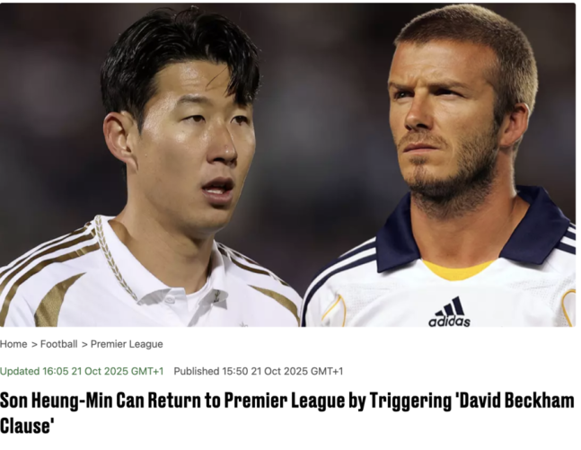 이런 가운데, 영국 언론들은 손흥민의 겨울 유럽 복귀 가능성을 잇따라 보도했다. '더 선'과 '스포츠바이블'은 "손흥민의 LAFC 계약에는 유럽 단기 임대를 허용하는 옵션이 포함되어 있다"며 "그가 MLS 비시즌 동안 프리미어리그에 복귀할 수 있다"고 전했다. 보도에 따르면, 이는 과거 데이비드 베컴이 LA갤럭시 시절 AC밀란으로 임대됐던 방식과 유사하다.