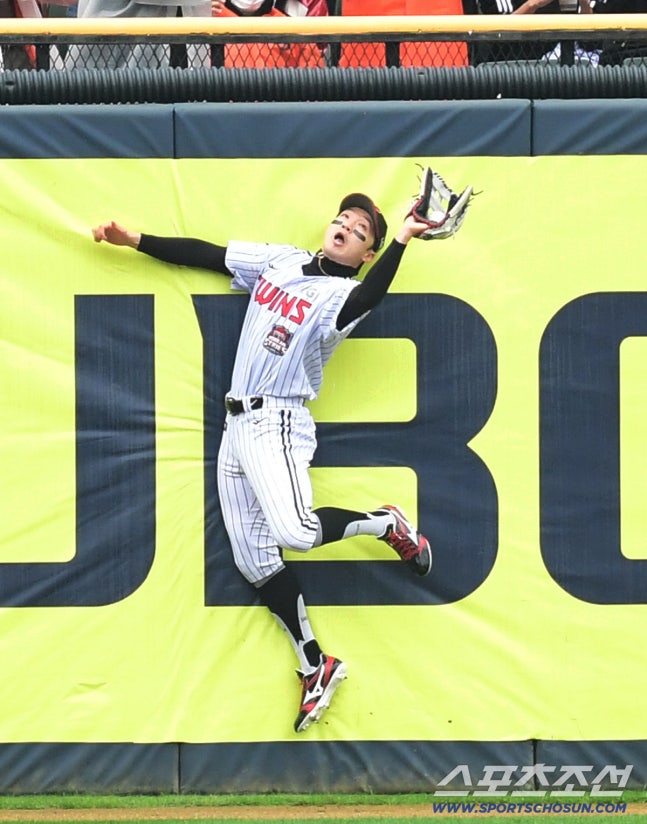 무려 한달만에 한국시리즈에 나서는 LG 선발 톨허스트의 어깨를 가볍게 해주는 엄청난 호수비. 플레이오프에서 기세를 올린 한화 타선의 기를 죽인 결정적인 수비였다.