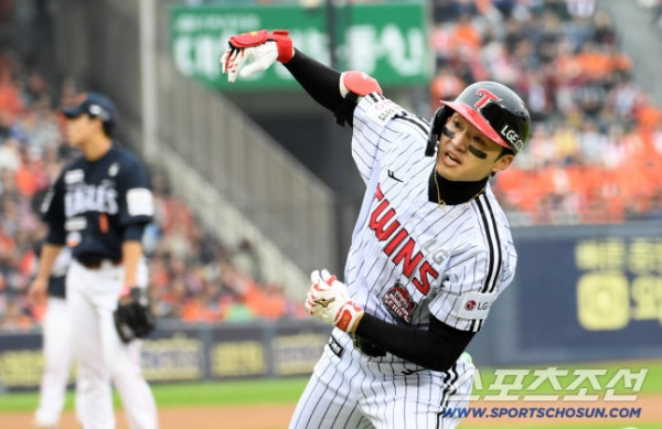 2B2S에서 5구째 몸쪽으로 온 125㎞의 커브를 가볍게 당겼는데 파울 폴 옆 담장을 살짝 넘어가는 홈런이 됐다. 1루로 달려가며 파울 여부를 확인하던 박해민이 흥분해 방망이를 집어던지다가 넘어질 뻔하기도.