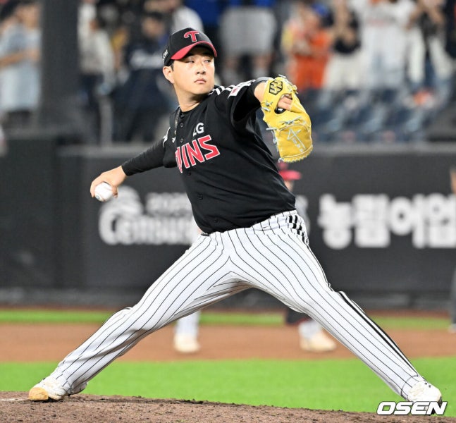 [OSEN=수원, 최규한 기자] 18일 수원 KT위즈파크에서 ‘2025 신한 SOL Bank KBO리그’ KT 위즈와 LG 트윈스의 더블헤더 2차전이 열렸다.홈팀 KT는 패트릭 머피, 방문팀 LG는 송승기를 선발로 내세웠다.9회말 마운드에 오른 LG 투수 김진수가 힘차게 공을 뿌리고 있다. 2025.09.18 / [email protected]