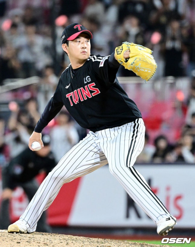 [OSEN=울산, 이석우 기자] 25일 울산 문수야구장에서 2025 신한 SOL 뱅크 KBO 리그 롯데 자이언츠와 LG 트윈스의 경기가 열렸다. 홈팀 롯데는 감보아가, 방문팀 LG는 손주영이 선발로 나섰다.LG 트윈스 김진수가 역투하고 있다. 2025.09.25 / [email protected]