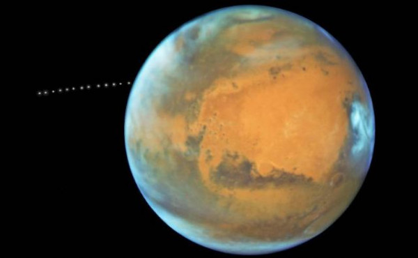 유럽우주국(ESA)의 마스 익스프레스 우주선이 촬영한 화성 적도의 물 얼음 (출처=행성과학연구소/스미소니언 연구소)