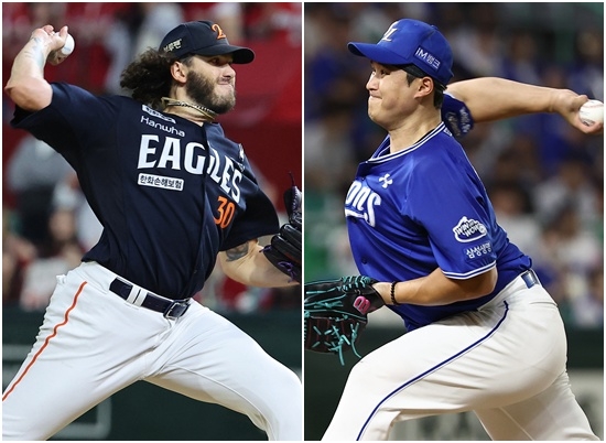 PO 5차전 선발투수로 나서는 한화 폰세(왼쪽), 삼성 최원태. 연합뉴스