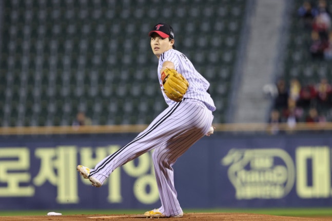 임찬규가 22일 청백전에서 역투하고 있다. 사진=구단 제공