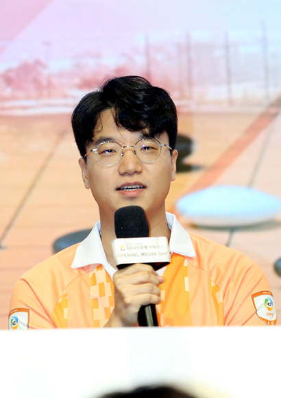 ▲ "선수선발식 때 감독님께서 작년에 우승했던 루틴을 모두 따라한다고 했기 때문에 작년 공약과 한치의 어긋남도 없이 대학생 동아리분들과 함께 어울리면서 즐거운 자리 만들겠습니다." (강동윤 9단)