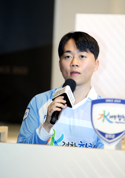 ▲ "앞에서 선수들의 버스를 많이 탄다고 말씀해 주셨는데 수려한합천은 여러 번 선수들의 변동이 있었지만 꾸준히 포스트시즌에 진출했기 때문에 선수들이 저를 믿고 따라온다면 포스트시즌까지 진출을 이끌어낼 곳것입니다. 나머지 우승 부분은 선수들에게 기대해서 꼭 우승해 보도록 하겠습니다." (수려한합천 고근태 감독)
