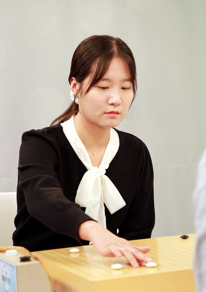 오유진 9단이 결승 첫 판을 제압했다. 22일 저녁 K바둑 스튜디오에서 열린 2025 더메리든 오픈 결승3번기 1국에서 목진석 9단을 꺾었다.