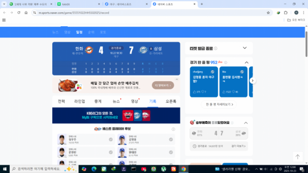 7안타 7점주고, 볼넷7개 준 점수 망조투수한화