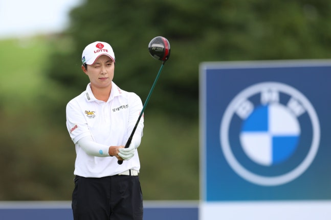 김효주가 지난 17일 전남 해남 파인비치 골프링크스에서 열린 LPGA 투어 BMW 레이디스 챔피언십 2025 2라운드에서 티샷 전 드라이버를 들고 코스를 살피고 있다. 사진=뉴시스