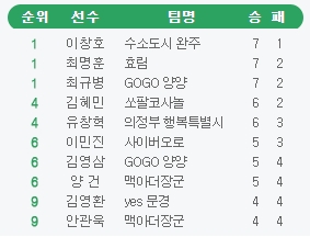 절체절명의 위기를 딛고 4승5패가 된 GOGO양양은 혼돈의 중위권 싸움을 이어갈 수 있게 됐다. 이겼다면 단�� 선두를 노려볼 수 있었던 효림은 5승4패로 뒷걸음치며 잠정 2위.