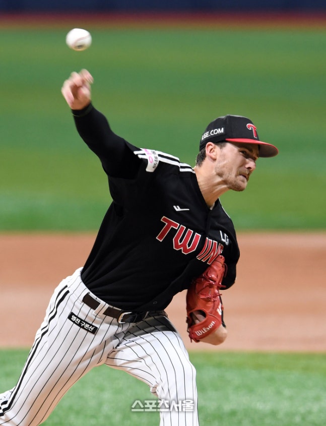 일단 공이 빠르다. 시즌 평균 속구 구속이 시속 151.3㎞다. 지난 16일 자체 청백전 때도 마운드에 올라 최고 구속 152㎞를 찍었다. 정규시즌 종료 후 실전 공백이 있었지만, 구속에는 문제가 없어 보인다. KS 1차전 선발로 나서도 손색없는 힘을 보여줬다.