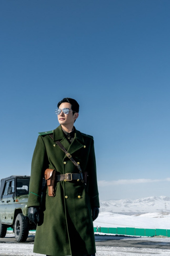 이어, 광활한 설원을 배경으로 선글라스를 낀 채 서 있는 스틸에서는 북한 엘리트 장교의 차가운 카리스마와 압도적인 아우라를 발산한다. 이는 몽골, 헝가리를 오간 해외 로케이션으로 완성된 영화의 스케일을 엿보게 하는 동시에 그가 이끌어야 하는 작전의 험난한 여정을 예고한다.