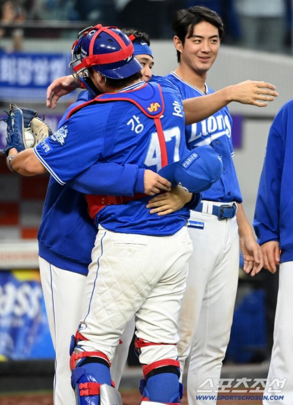 [대전=스포츠조선 허상욱 기자] 한화의 두 에이스 와이스와 폰세가 강민호의 인싸 매력에 빠져버렸다.