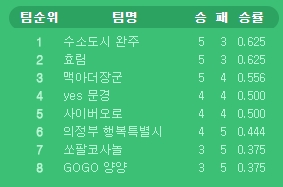 순위 또한 직전 라운드에서 6위로 처음 꼴찌를 벗어났고, 이날 승리로 5승4패가 되며 잠정 3위로 껑충 뛰었다. 지하의 맥아더장군도 기뻐할 꼴찌팀의 '도장 깨기' 드라마. 반면 다 잡은 승리를 놓친 의정부행복특별시는 4승5패가 되며 6위로 밀려났다.