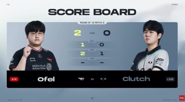 T1 '오펠' 강준호가 20일 잠실 DN 콜로세움에서 펼쳐진 2025 FC 온라인 슈퍼 챔피언스 리그(FSL) 16강 디플러스 기아 '클러치' 박지민을 2:0으로 제압하고 8강에 합류했다.
