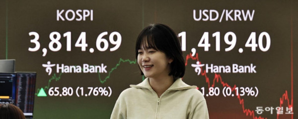 20일 코스피가 3,800을 돌파하며 사상 최고치를 경신했다. 코스피는 전 거래일에 비해 1.76% 오른 3,814.69로 마감했다. 미중 무역 긴장 완화, 한미 관세 협상 진전에 따른 기대로 상장 종목의 70%가 상승 마감했다. 부동산에서 증시로 ‘머니무브’가 이뤄질 수 있다는 기대까지 더해졌다. 연말 코스피가 4,000까지 도달할 수 있다는 전망도 나온다. 이날 코스피뿐만 아니라 일본 대만 증시도 사상 최고치를 경신하는 등 아시아 증시가 함께 달아 올랐다.》