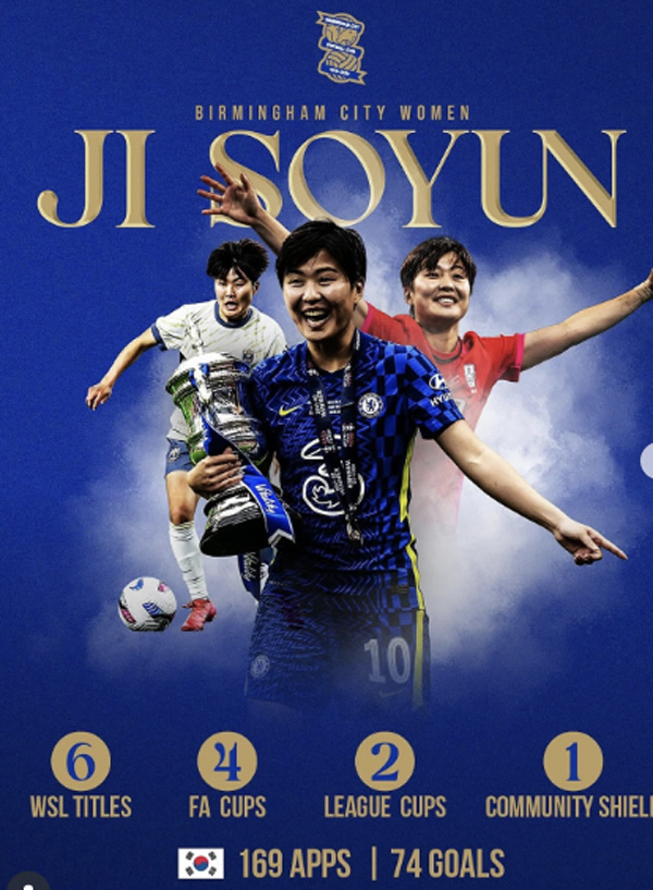9월 시애틀에서 버밍엄으로 임대를 떠난 지소연. 영국 무대엔 3년만에 복귀했다. 출처=버밍엄